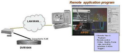 Connect to LAN/WAN enabling remote monitoring, recording, playback, backup and control of 4ch.video and 1ch audio